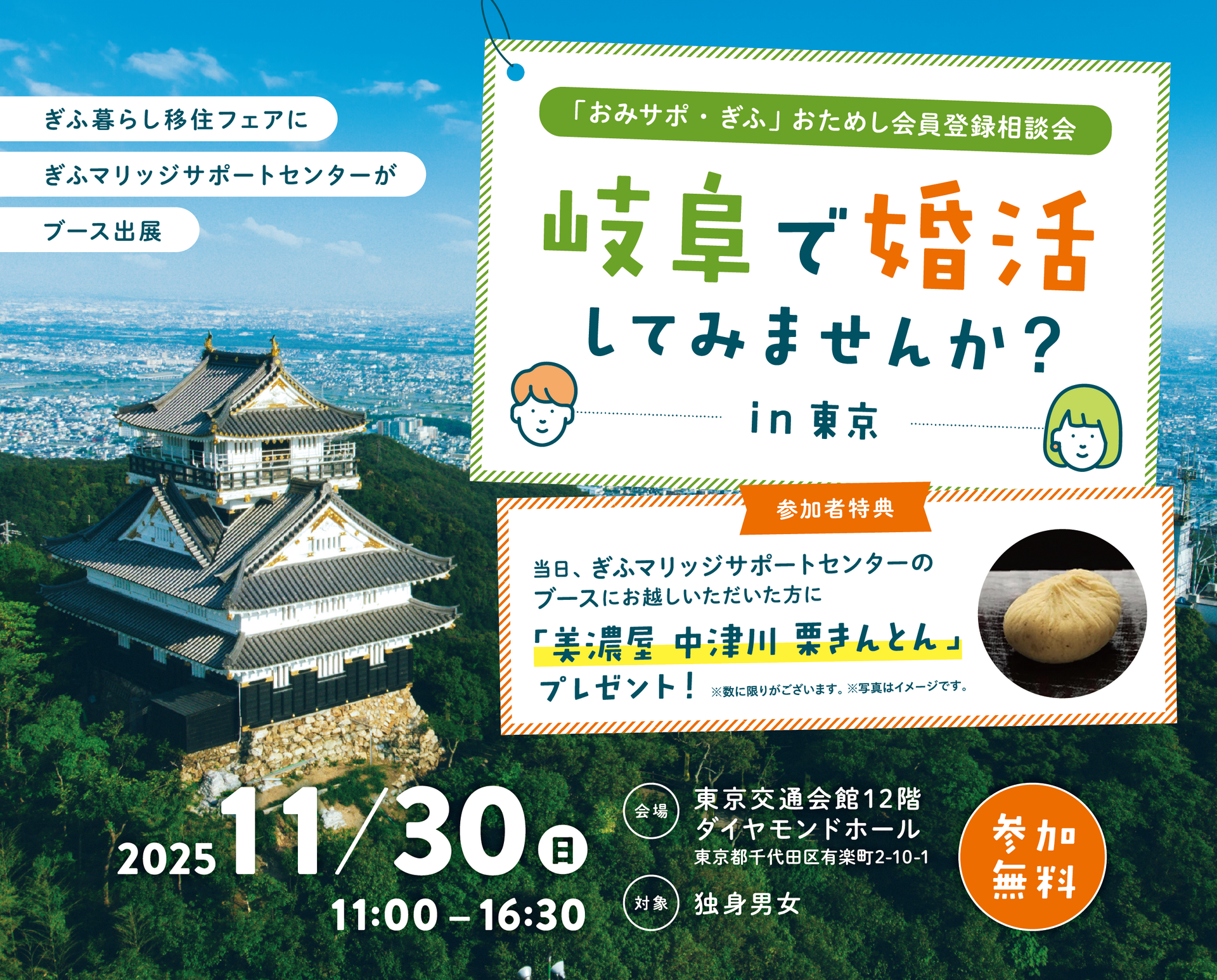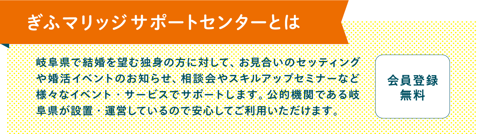 岐阜県では、結婚を望む独身者の方に対して、お見合いのセッティングや婚活イベントなど様々なイベント・サービスでサポートしています。